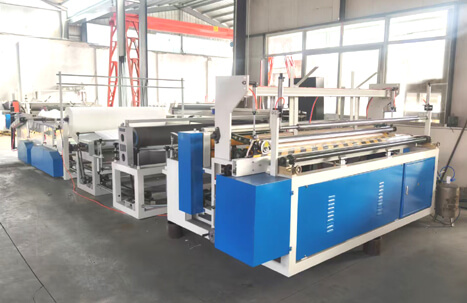 XTK2200 Full-automatic high-speed glue kitchen towel rewinding, perforating, embossing machine, which can produce both glue kitchen towel tissue paper and toilet paper roll. The machine is composed of parent roll stand, press and feeding paper device, embossing device, glue device, paper feeding device, perforation device, rolling device, electrical control system and cutting device.